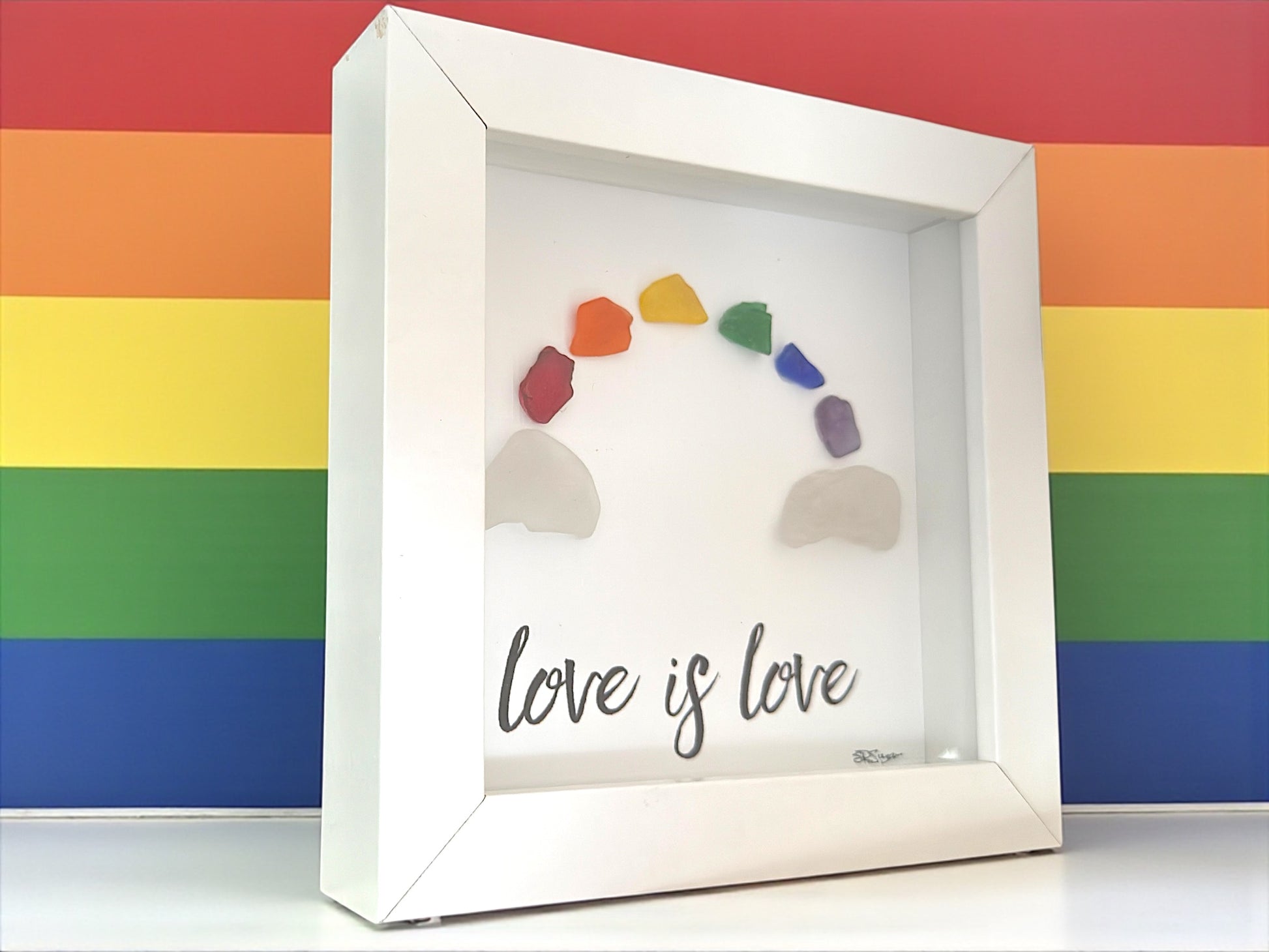 Bring a burst of color and joy into your home with this vibrant 5x5 inch sea glass art piece featuring a stunning rainbow with fluffy clouds on each end. Crafted from genuine sea glass in green and blue sea glass and color enhanced shades of red, orange, yellow, purple. This rainbow is a beautiful representation of hope and promise.